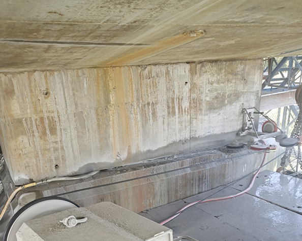 3、切割拆除:對(duì)支撐梁進(jìn)行支撐,使用切割方法對(duì)梁體進(jìn)行切割分塊,使用吊機(jī)吊到基坑邊破碎或運(yùn)到指定地點(diǎn)再進(jìn)行破碎回收鋼筋。使用切割拆除zui大的局限在于基坑周邊能擺放大型吊機(jī)。優(yōu)點(diǎn)是施工速度很快、使用趕工期的項(xiàng)目、能擺放大型吊機(jī)的情況下造價(jià)相對(duì)較低;缺點(diǎn)是對(duì)場(chǎng)地要求較高(需有擺放吊機(jī)的位置)、運(yùn)輸困難費(fèi)用高(如不能現(xiàn)場(chǎng)堆放及破碎)。